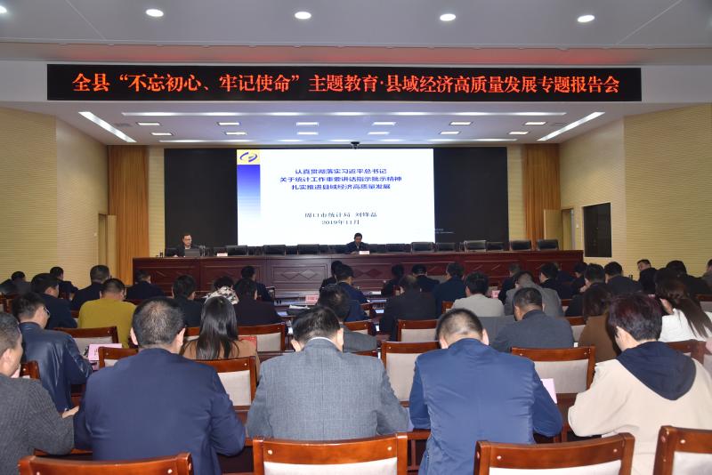 11月14日,扶溝縣召開“不忘初心、牢記使命”主題教育·縣域經(jīng)濟高質(zhì)量發(fā)展專題報告會,特邀市統(tǒng)計局黨組成員、總統(tǒng)計師劉鋒磊作專題輔導(dǎo)。張穎波、姜永來、張建中、段然、王霄靈、趙紅亮、閆忠玉、尚守永、曹來凌等縣領(lǐng)導(dǎo)聆聽報告。縣委常委、常委副縣長王霄靈主持會議。