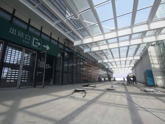 經(jīng)過檢票機安檢通道,乘電梯或步梯通往站臺。該站站場設2臺4條(含正線2條),設基本站臺、側式站臺各1座,站臺最高聚集人數(shù)為600人。