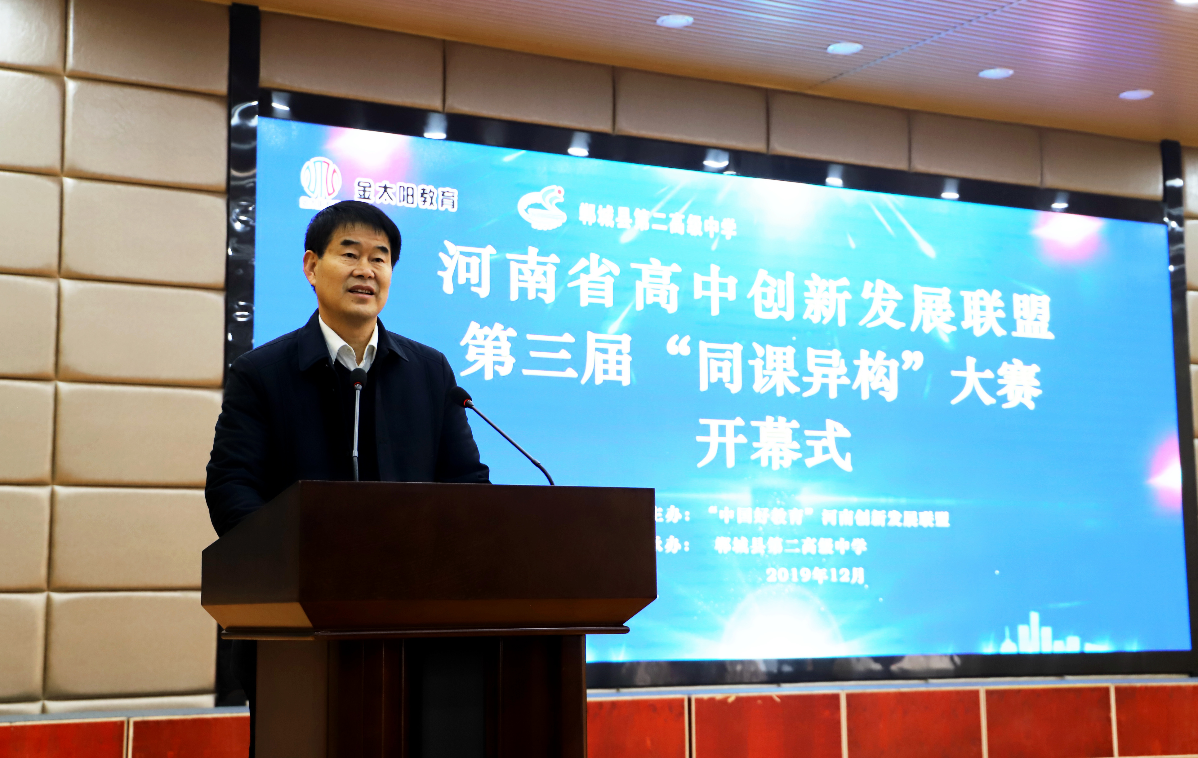 12月7日,由河南省高中創(chuàng)新發(fā)展聯(lián)盟主辦、鄲城二高承辦的全省第三屆“同課異構(gòu)”大賽開幕。鄲城縣教體局黨組書記、局長劉現(xiàn)營出席開幕式并致詞。來自全省15個縣市區(qū)的高中代表隊將在3天賽期內(nèi)各展風(fēng)采,共通思想、共享智慧、共融發(fā)展。