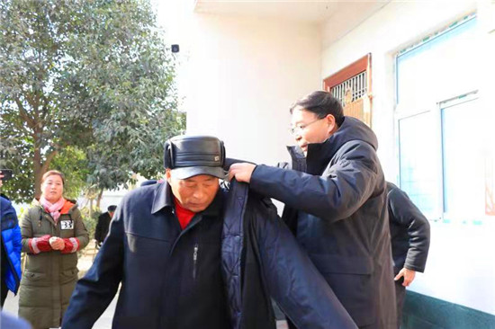 當(dāng)日下午,丁有亮一行給敬老院老人們帶來了棉襖、棉被等御寒物品。丁有亮打開棉襖包裝,幫助老人們?cè)嚧┐笮?,并詳?xì)詢問老人們的身體和日常生活情況,代表區(qū)黨工委、管委會(huì)祝老人們新年愉快,身體健康。