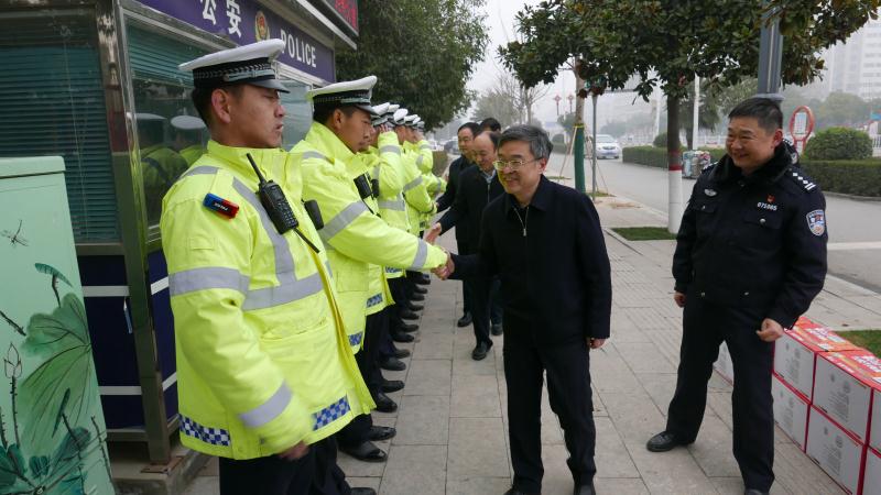 慰問中,皇甫立新、劉國慶一行首先來到縣交警大隊城區(qū)中隊五岔路口執(zhí)勤點,同正在執(zhí)勤的交通民警一一握手,并代表縣委、縣政府向交警大隊全體民警、協(xié)警一年來付出的努力和辛苦表示感謝和問候,囑咐他們要注意安全,保重身體。在詳細(xì)了解了春節(jié)期間治堵保暢工作情況匯報后,皇甫立新對交警大隊全體民警和輔警在春節(jié)期間放棄和家人團(tuán)聚,舍小家顧大家,堅守在道路交通安全管理崗位的工作態(tài)度,以及主動作為,敢于擔(dān)當(dāng),無私奉獻(xiàn)、任勞任怨的工作作風(fēng)給予高度肯定。并希望大家在春節(jié)期間,繼續(xù)發(fā)揚吃苦耐勞的精神,全力做好道路安全保障工作,確保春節(jié)期間全縣道路交通安全暢通,讓全縣人民度過一個平安、祥和的春節(jié)。同時,縣交警大隊要進(jìn)一步做好執(zhí)勤民警后勤保障及防寒保暖工作,加強人員輪換上崗,切實保障公安交警切身利益,解決他們的后顧之憂。