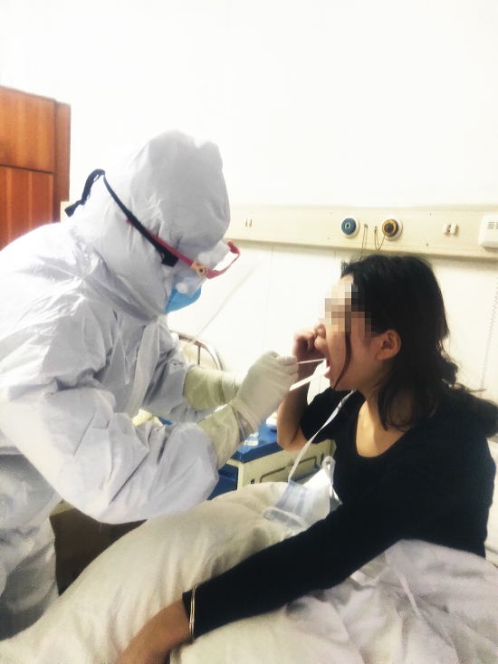 “第一次給疑似病人采集咽拭子時(shí),說(shuō)實(shí)話,難免有點(diǎn)緊張。病人張大嘴巴,棉簽剛一伸進(jìn)去,他就干嘔起來(lái),然后猛烈嗆咳,連續(xù)兩次才完成采樣?!焙粼趧倓偨Y(jié)束一例標(biāo)本采集后說(shuō):“現(xiàn)在,我都是下手又快又準(zhǔn),避免病人干嘔和嗆嗽?!?/p>