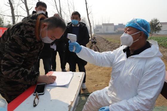 起初,苑統(tǒng)俊配合村干部在村里宣傳疫情防控政策、方法,1月25日,我省啟動一級應(yīng)急響應(yīng),港區(qū)迅速做出響應(yīng),在轄區(qū)內(nèi)各個村莊社區(qū)設(shè)置疫情監(jiān)控點,限制人員流動,全天候監(jiān)測進出人員身體狀態(tài)。苑統(tǒng)俊擔起監(jiān)控點村醫(yī)的職責,負責該村一至四組的疫情防控。他每天騎電動車前往孫莊村監(jiān)測點值守,為過往人員測量體溫、觀察外地返鄉(xiāng)人員狀態(tài)、登記觀察正處在隔離期的從湖北、武漢返鄉(xiāng)人員體溫數(shù)據(jù),為鄉(xiāng)村干部開展防控工作提供技術(shù)支持。