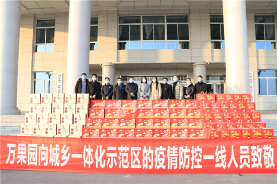 載著滿滿的愛心,懷著對一線疫情防控人員的崇敬,2月11日下午,河南萬果園實業(yè)集團有限公司為市城鄉(xiāng)一體化示范區(qū)“疫”線防控人員送來了水果、面包、火腿腸等食品。