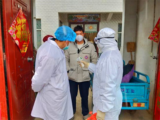 ?張彬和同事到村民家中測量體溫