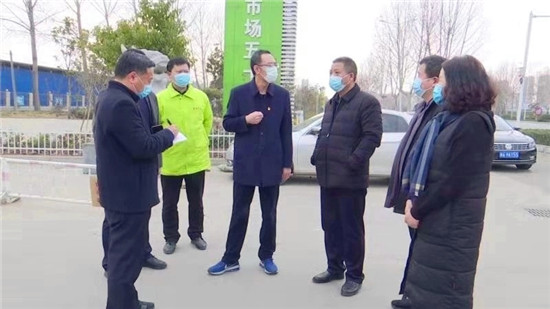 2月13日,開(kāi)發(fā)區(qū)黨委書(shū)記王文峰到黃淮農(nóng)產(chǎn)品市場(chǎng)現(xiàn)場(chǎng)辦公,要求精準(zhǔn)施策,注重實(shí)效,切實(shí)加強(qiáng)疫情防控和市場(chǎng)物資供應(yīng)工作。開(kāi)發(fā)區(qū)黨委委員、管委會(huì)副主任谷靜等陪同。