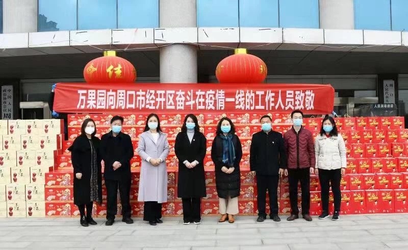 2月13日,河南萬果園實業(yè)集團(tuán)有限公司向開發(fā)區(qū)捐贈一起物資,助力疫情防控一線工作人員。