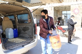 緊接著,馬不停蹄,許新衛(wèi)趕緊去為隔離人員充裝液化氣。許新衛(wèi)把液化氣空罐搬到車上,又是開著他的面包車,一溜煙地朝著液化氣公司而去,約莫10多分鐘,來到一家液化氣充裝點。搬下氣罐、充氣,付過100元現(xiàn)金后,許新衛(wèi)把氣罐搬到車上,再次回到隔離人員居住的民營醫(yī)院,卸下氣罐后,已經(jīng)將近11時了,他又趕緊來到許灣村南卡點,搖身一變,又成了一位測量體溫的“衛(wèi)生員”。 這樣的生活,自從初一開始直到現(xiàn)在,他從來沒有停止過。
