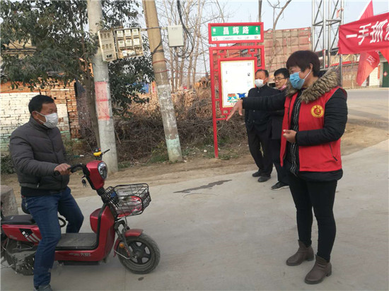 臘月三十那天,餃子剛剛包好,王愛月同志臨危受命,根據(jù)鎮(zhèn)黨委安排部署,果斷迅速組織布防嚴(yán)控,立即進(jìn)入疫情防控第一線。鄉(xiāng)鎮(zhèn)召集各村黨支部書記召開會議,分析研判嚴(yán)峻形勢,要求各村支部發(fā)揮基層組織“戰(zhàn)斗堡壘”作用,立即摸清情況,穩(wěn)定群眾情緒,增強(qiáng)群眾信心;鎮(zhèn)中心衛(wèi)生院給各村醫(yī)安排防疫工作。會后,村兩委班子第一時(shí)間成立了奉母鎮(zhèn)后邵村防控新冠肺炎疫情領(lǐng)導(dǎo)小組,王愛月?lián)胃苯M長,協(xié)助支部書記制定全村防控應(yīng)急處置方案,負(fù)責(zé)處理疫情持續(xù)期間各類防控工作,結(jié)合后邵村實(shí)際,從疫情摸排、防控物資采購、應(yīng)急值守、各場所消毒、道路設(shè)卡等各方面全面做好準(zhǔn)備。全村組建6個(gè)排查組對全村居民逐戶排查,她親自帶隊(duì)逐戶排查所有外來人員,確保不漏一戶一人。之后,建立排查臺賬,及時(shí)準(zhǔn)確掌控疫情動(dòng)態(tài),為每位務(wù)工返鄉(xiāng)人員發(fā)放了注意事項(xiàng)告知書和宣傳單,對外出返鄉(xiāng)人員落實(shí)了包戶責(zé)任制。同時(shí)建立防控微信群,實(shí)時(shí)掌握他們的身體情況,解答他們的疑惑,全力做好心理疏導(dǎo)工作,切實(shí)解決鄉(xiāng)里鄉(xiāng)親的困難問題。