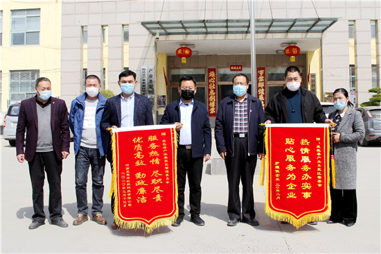 “熱情服務辦實事、貼心服務為企業(yè)”“服務熱情盡職盡責、優(yōu)質(zhì)高效勤政廉潔”3月17日,河南護理佳紙業(yè)有限公司和河南梵蒂詩紡織科技有限公司兩家企業(yè)的負責人,來到鹿邑縣產(chǎn)業(yè)集聚區(qū)管委會,送上了錦旗,對管委會服務企業(yè)發(fā)展表示感謝。