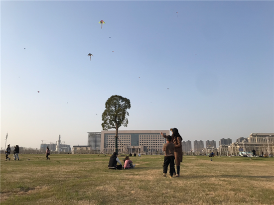 3月20日,周口天氣晴朗,最高氣溫27℃,東風(fēng)3-4級(jí)。在市公安局南草坪廣場,市民帶著口罩,在空曠的場地放風(fēng)箏、曬太陽,享受春光。