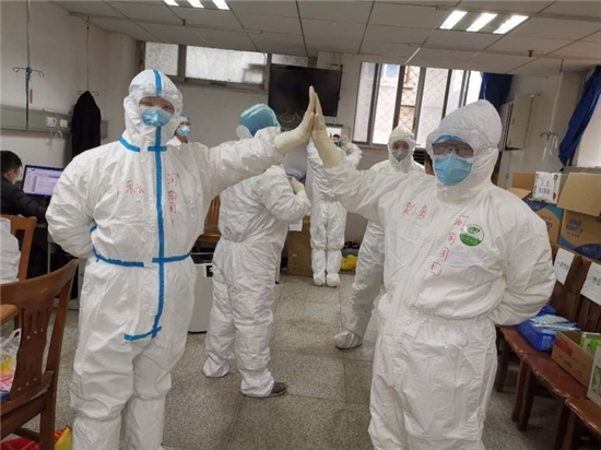 周口港區(qū)醫(yī)院援鄂醫(yī)療隊員在武漢商職醫(yī)院