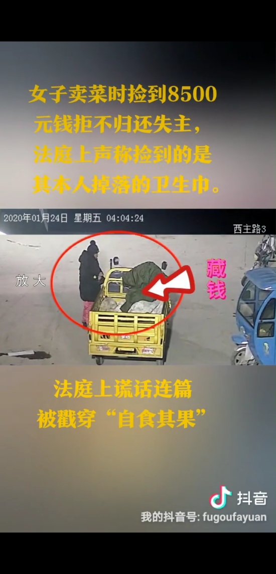 2020年1月24日,原告陳某早上3點左右去扶溝農(nóng)貿(mào)市場給自己經(jīng)營的超市進菜,身上共攜帶8600元現(xiàn)金。在購買被告楊某、李某夫妻倆的西蘭花時,付給了其100元現(xiàn)金,隨后其余的8500元錢掉在了楊某、李某賣菜的三輪車旁邊。發(fā)現(xiàn)錢款丟失的陳某趕快報警,經(jīng)公安機關(guān)查看監(jiān)控錄像顯示,是賣菜的楊某將錢撿走。事后陳某找到楊某、李某夫婦要求歸還丟失的錢款,楊某、李某先是承認撿到該8500元,但不同意歸還。后在陳某再次要求歸還時,楊某、李某拒不承認撿到錢了,陳某無奈向扶溝法院提起訴訟,要求楊某、李某歸還拾到的錢款并承擔訴訟費用。