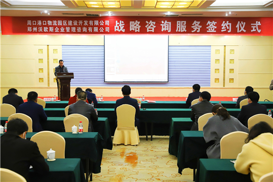 簽約儀式上,周口港口物流園區(qū)建設(shè)開(kāi)發(fā)有限公司董事長(zhǎng)李培超與鄭州沃歐斯企業(yè)管理有限公司總經(jīng)理阮肇民簽訂了戰(zhàn)略咨詢服務(wù)協(xié)議。