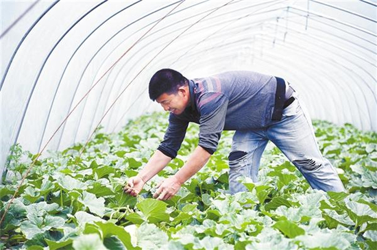 河南省周口市鄲城縣秋渠鄉(xiāng)的大棚甜瓜即將陸續(xù)上市,瓜農(nóng)正抓緊時(shí)間做好田間管護(hù)。當(dāng)?shù)夭捎谩肮?農(nóng)戶”的經(jīng)營(yíng)模式,讓村民在瓜棚實(shí)現(xiàn)就近就地就業(yè),助力脫貧增收。