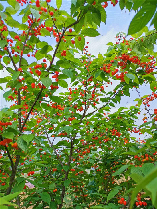 時(shí)下,武灣村近千畝櫻桃園里棵棵樹(shù)上滿(mǎn)枝碩果,顆顆勻圓,與枝葉互相掩映,濃艷流鮮。信手采擷嘗鮮,便有“四月朱櫻乍熟,甘露一般清味”的切身體驗(yàn)。