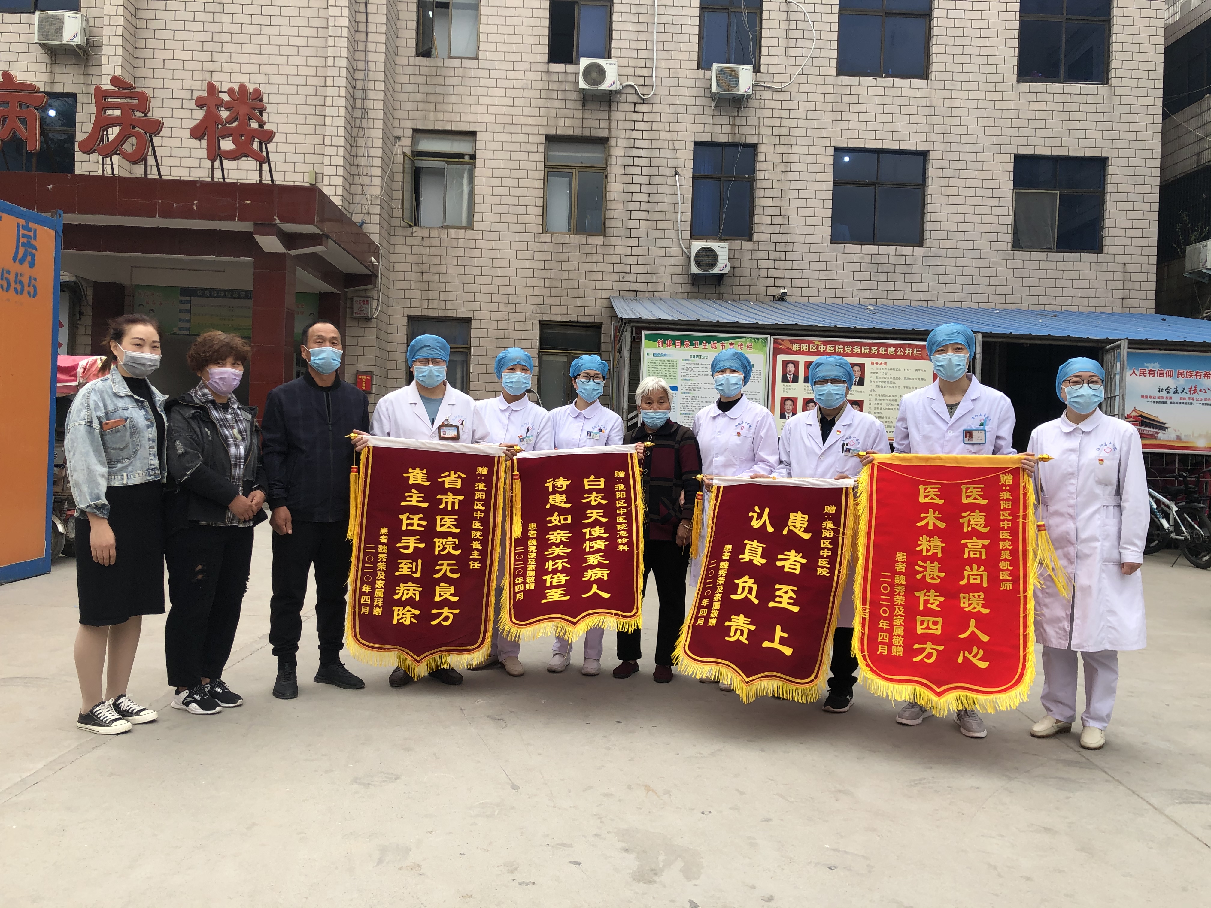 “真是太感謝你們了!技術(shù)和服務(wù)絕對雙一流!”4月27日上午,一名86歲老太太的家屬手捧四面錦旗來到淮陽區(qū)中醫(yī)院,親自將錦旗送到副院長劉永、外科主任崔成品、ICU醫(yī)師晁凱、護士長劉婷婷、急診科護士長李琴手中?;颊呒覍傥罩拗魅蔚氖盅酆瑹釡I久久不能松開,“真是沒想到能撿回我那老母親的一條命!多虧了崔主任,多虧了咱們醫(yī)院的全體醫(yī)護人員,在別的醫(yī)院都不給治療了,是你們中醫(yī)院幫我家老太太搶回一命??!”患者家屬的心情久久不能平復(fù),感激之情難以言表。