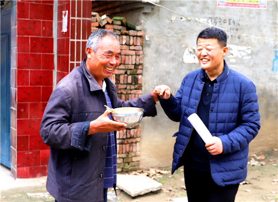 “我先說(shuō)。2015年建軍節(jié),我到鎮(zhèn)政府去接劉俊義,他帶著鋪蓋和鍋碗瓢盆,看身材、看氣質(zhì),當(dāng)時(shí)我就問(wèn)‘你當(dāng)過(guò)兵吧?’他干脆地回答‘是’。這個(gè)日子我記得清,那天下了雨,閑置多年的村室漏雨沒(méi)法住,劉俊義又連夜回城,第二天就帶人來(lái)整修村室、打掃衛(wèi)生?!痹诓稍L座談會(huì)上,時(shí)任馬莊行政村黨支部書記的于天同眼泛淚花說(shuō):“咱也不遮不掩,之前馬莊確實(shí)是村級(jí)黨組織軟弱渙散村,貧困戶多,工作艱難。劉俊義來(lái)了之后,處處作表率,沒(méi)日沒(méi)夜拼命地干,大雨中幫趙冬升家收麥子、爬房頂幫于小非家修屋子……更關(guān)鍵的是請(qǐng)公路局把全村的路修通了,裝上了路燈,一條扶貧路通到馬莊村群眾的心窩里,是黨的光輝把馬莊3000多人的心照亮了?!?/p>