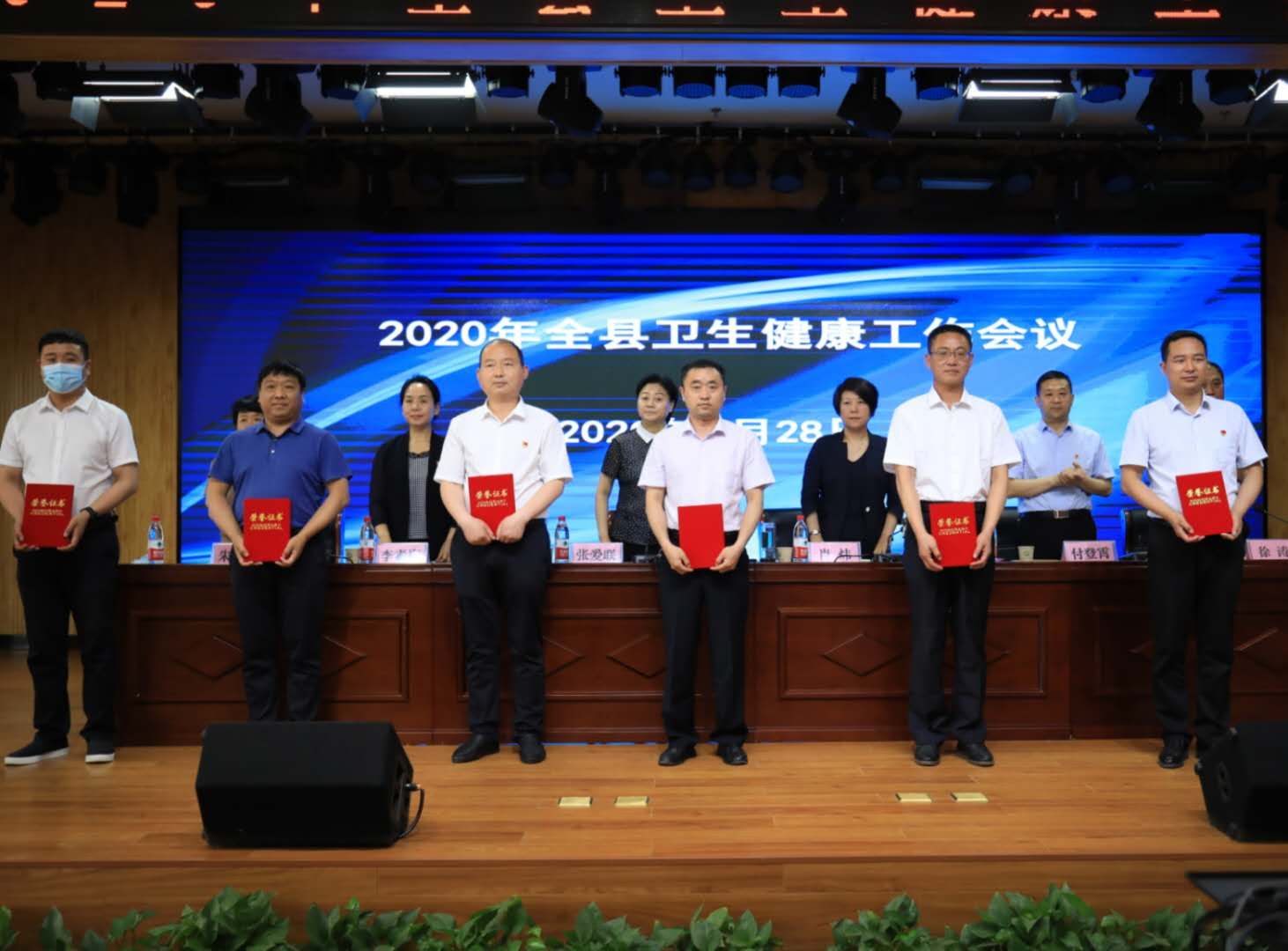 李素梅宣讀《鄲城縣人民政府關于表彰2019年度全縣衛(wèi)生健康工作先進單位健康扶貧工作先進單位和先進工作者的通報》和《關于表彰全縣2019年度“提高婦女兒童健康保障水平”民生實事工作先進單位和個人的決定》;朱素華作提高婦女兒童健康保障水平工作報告;付登霄作全縣衛(wèi)生健康工作報告,回顧總結了2019年度全縣衛(wèi)生健康工作,對2020年工作進行了安排部署;徐濤宣讀《鄲城縣衛(wèi)健委關于表彰2019年度優(yōu)秀民營醫(yī)院的決定》。會上與各醫(yī)療衛(wèi)生健康單位負責人簽訂2020年度衛(wèi)生健康和健康扶貧工作目標責任書。