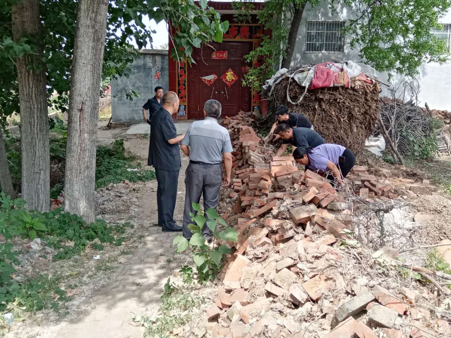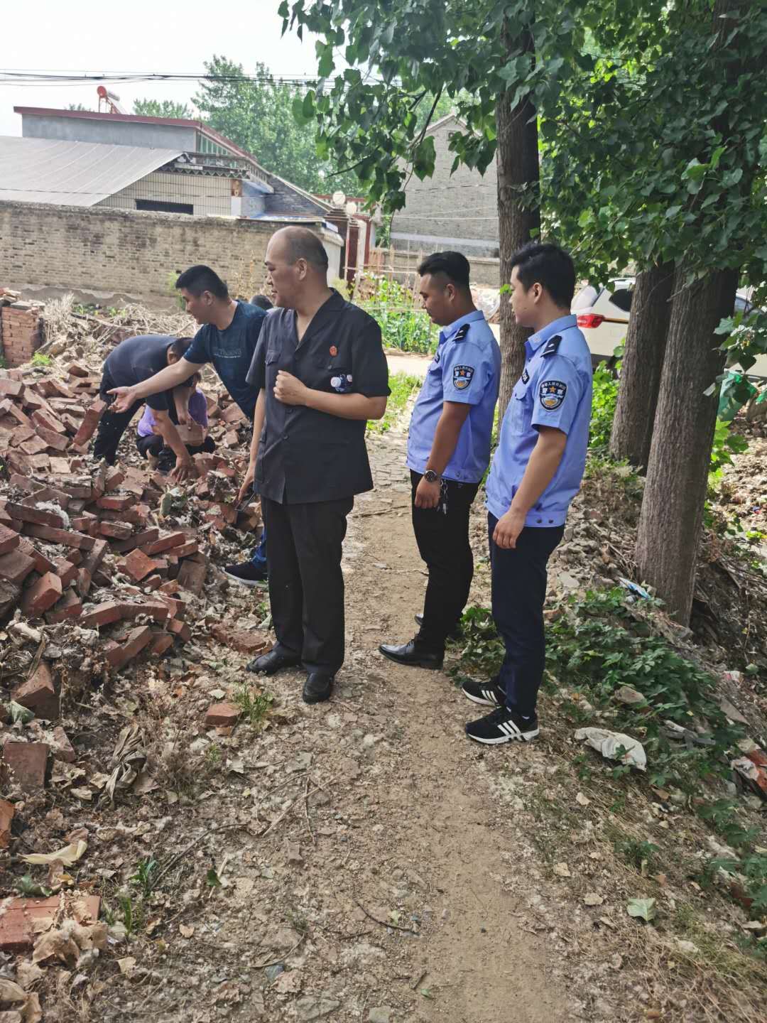 與人為善,以和為貴。近日,沈丘縣人民法院執(zhí)行法官劉烽和5名法警不畏酷暑,前往該縣大邢莊鎮(zhèn)某行政村協(xié)助申請執(zhí)行人周某清理被執(zhí)行人李某家門前的道路障礙物,并邀請當(dāng)?shù)厝舜蟠?、及村組干部參與見證。執(zhí)行現(xiàn)場,法官堅持從鄰里角度出發(fā),以“三尺巷”的故事勸說雙方當(dāng)事人以和為貴,最終化解了該起鄰里糾紛。