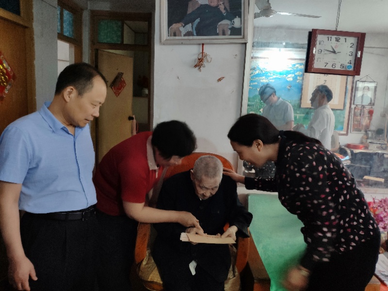 趙百廉老人家現(xiàn)年94歲,系黃埔軍校二十三期學員,同時是一名抗日老兵。張梅枝一行走進趙百廉家中,對老人噓寒問暖,詳細了解老人的起居飲食、身體狀況,并為老人送上了慰問品、慰問金,感謝老人在抗日戰(zhàn)爭中作出的貢獻。同時向他送上黨和政府的關懷和節(jié)日的祝福,祝愿他身體健康,晚年幸福。