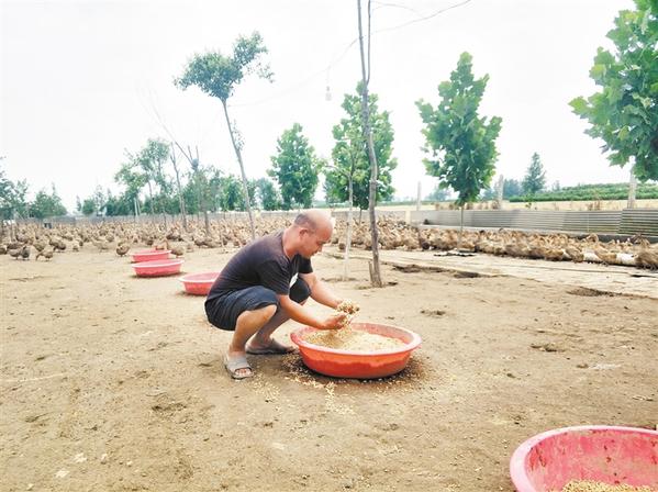 6月11日,沈丘縣石槽集鄉(xiāng)王湖村村民在專業(yè)養(yǎng)殖合作社內(nèi)給鴨群喂食。近年來,該縣大力引導農(nóng)民發(fā)展特色產(chǎn)業(yè),幫助農(nóng)民穩(wěn)定增收,為鞏固提升脫貧成果打下堅實基礎。