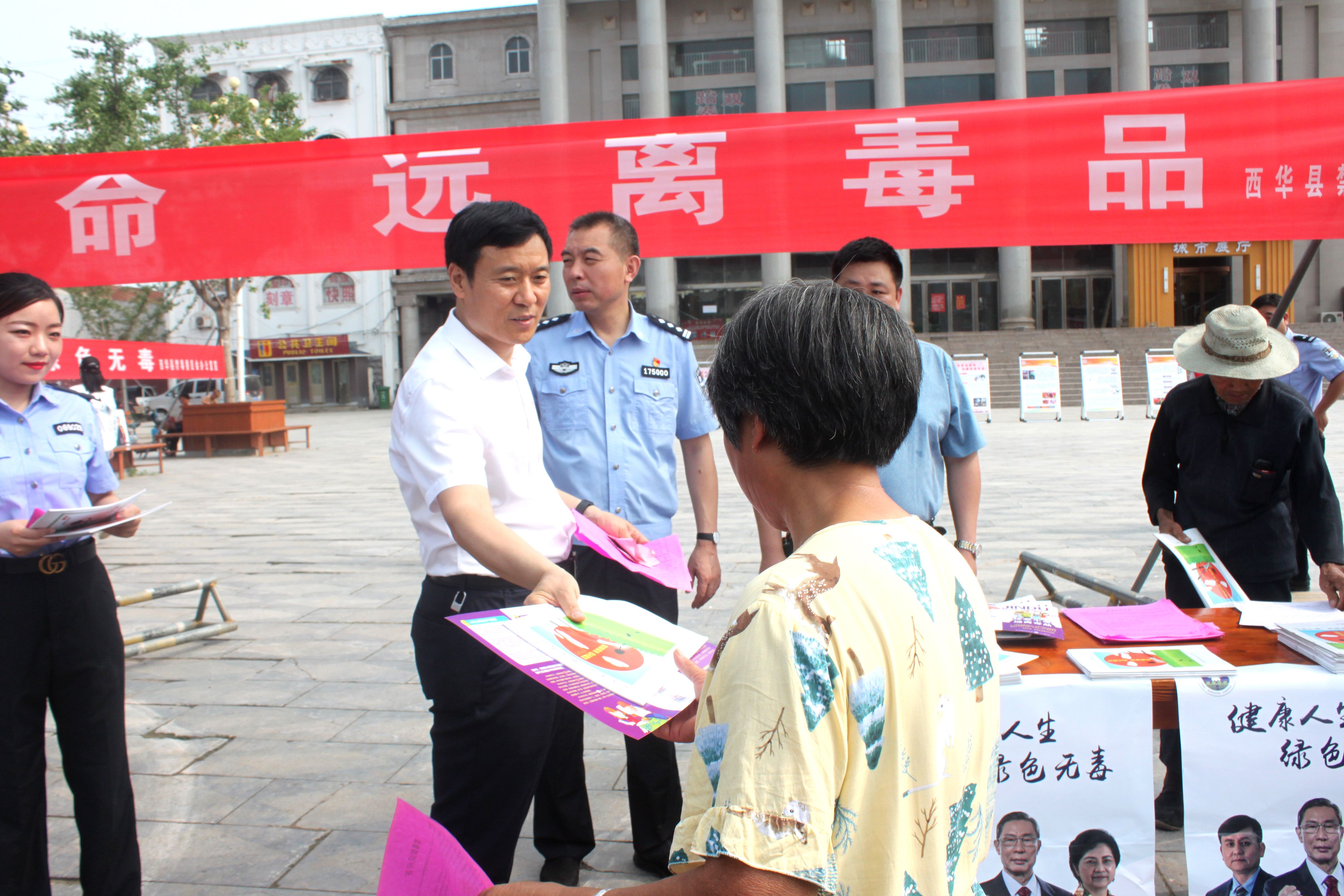 在第33個“國際禁毒日”到來之際,6月24日上午,西華縣禁毒委員會在縣城女媧廣場組織開展了全民禁毒宣傳活動。縣委常委、統(tǒng)戰(zhàn)部長、縣禁毒委第一副主任趙增先出席活動。