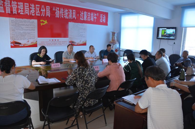 6月24日下午,周口市市場監(jiān)督管理局港區(qū)分局在五樓會議室開展“揚傳統(tǒng)清風 過廉潔端午”活動,主任科員焦艷霞主持,全局干部職工參加。