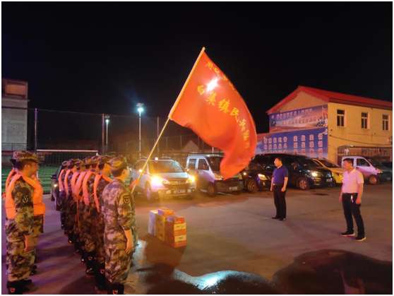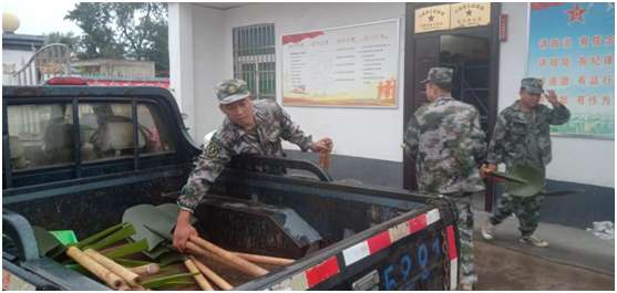 預(yù)警就是命令,白集鎮(zhèn)人武部21時即刻發(fā)出通知,來自全鎮(zhèn)的24名基干民兵迅速集結(jié)到鎮(zhèn)政府,準備鐵鍬、雨衣、手電筒、對講機等物品100余件,汽車6輛,鏟車1輛,運輸車2輛,“白集鎮(zhèn)民兵應(yīng)急排旗幟”1支。
