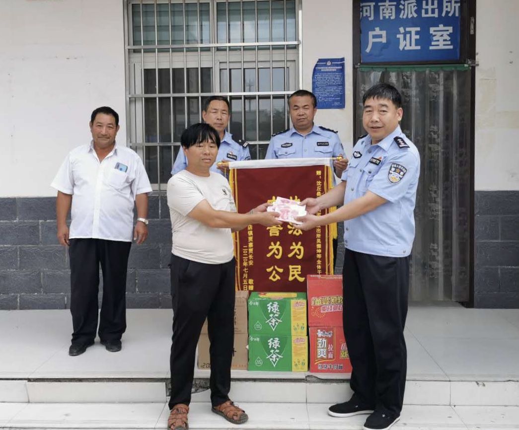 7月6日上午,河南派出所舉行退贓儀式,3.8萬元現(xiàn)金完璧歸趙,受害人賈某含著激動的淚水將一面“一心為公、執(zhí)法為民”的錦旗贈送給該所,由衷表達對該所民警的謝意。