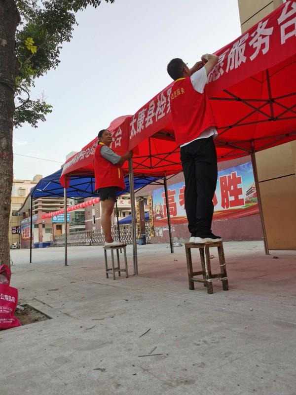6日下午3時(shí)許,鄭雪艷和王作宇二人被安排到太康縣華夏外國(guó)語(yǔ)高考考點(diǎn)負(fù)責(zé)為考生和家長(zhǎng)搭建11個(gè)茶水棚?!跋挛?點(diǎn)正是一天中最熱的時(shí)候,考點(diǎn)附近也沒有樹蔭?!碧悼h網(wǎng)信辦副主任高一麟回憶說(shuō),要在天黑之前搭建好11個(gè)茶水棚,對(duì)于鄭雪艷和王作宇兩人來(lái)說(shuō)并非易事。