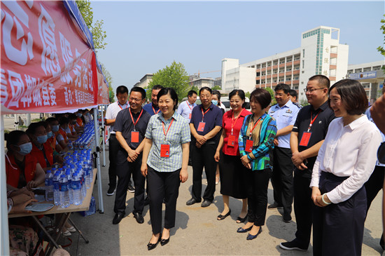 7月7日,全國高考進行時。鄲城縣為大力弘揚“奉獻、友愛、互助、進步”的志愿服務精神,由中共鄲城縣委宣傳部、共青團鄲城縣委聯(lián)合主辦,鄲城縣青年志愿者協(xié)會承辦,鄲城縣農(nóng)信社獨家贊助的愛心助考志愿服務活動在全縣6個考點順利開展,身著紅馬甲的志愿者們成為服務高考的亮麗風景線。