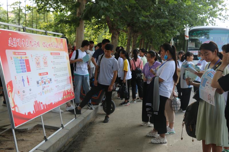 在該縣各標(biāo)準(zhǔn)化高考考點(diǎn)征兵宣傳現(xiàn)場,人頭攢動、熱鬧非凡?!昂媚袃?,來當(dāng)兵”大紅條幅和“把忠心獻(xiàn)給祖國,把青春獻(xiàn)給軍營”“參軍報(bào)國盡義務(wù),熱血青年競風(fēng)采”的大型宣傳牌格外引人注目,內(nèi)容豐富的征兵宣傳展板一字排開,《征兵宣傳手冊》《大學(xué)新生應(yīng)征入伍宣傳單》《征兵政策宣傳解讀手冊》等征兵宣傳資料擺放在咨詢臺上一目了然,吸引了眾多的考生和家長駐足觀看,圍著咨詢臺詢問有關(guān)征兵事宜。