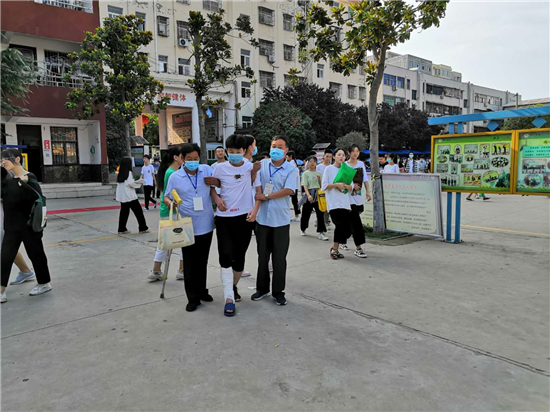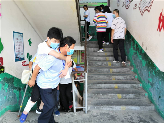 “終于到了,要不是身體好,還真不能一口氣把這孩子背上三樓?!编惓强h第三實驗中學(xué)考務(wù)老師張子江邊擦汗邊笑著說。