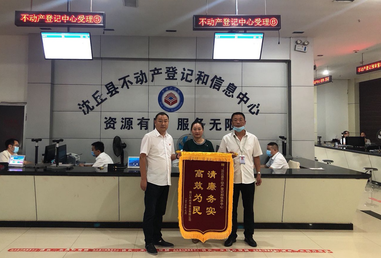 近日,在沈丘縣行政服務(wù)中心二樓不動(dòng)產(chǎn)登記窗口,周口市尚書實(shí)業(yè)有限公司送來一面寫有“清廉務(wù)實(shí)、高效為民”的錦旗,對窗口工作人員在辦理尚書實(shí)業(yè)開發(fā)的尚書府東宸、九州府等多個(gè)項(xiàng)目的不動(dòng)產(chǎn)相關(guān)登記過程中高效、便捷、周到,全方位的服務(wù)表示肯定及衷心感謝。