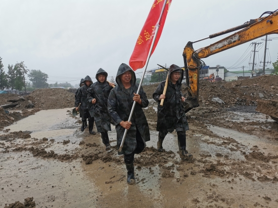 水位不斷上漲,險(xiǎn)情隨時(shí)發(fā)生。要想扒開(kāi)中間的土堆堵塞點(diǎn),必須越過(guò)長(zhǎng)度7米,深度3米的兀術(shù)溝。水深,沒(méi)有船只怎么辦?鎮(zhèn)武裝部長(zhǎng)武文哲指揮在上面臨時(shí)架起2只鋼管,并身先士卒,第一個(gè)攀爬涉水到達(dá)中間的土堆上。隨后,基干民兵依次趕到。當(dāng)時(shí)雨越下越大,同志們揮锨挖土,疏寬溝道。雖然穿著雨衣,但渾身濕透,雨鞋里灌滿了雨水。基干民兵王雷霆、王攀龍先后栽在水里,不言一聲苦,反而笑稱自己洗了一個(gè)“洪水澡”。經(jīng)過(guò)40分鐘的激戰(zhàn),兀術(shù)溝堵塞缺口被打開(kāi),洪水直泄東流。