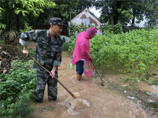 “鄭老莊村500畝農(nóng)田被淹,10余名受災(zāi)群眾等待轉(zhuǎn)移。”得知此消息后,鎮(zhèn)武裝部長李光榮火速組織民兵應(yīng)急分隊(duì)趕往該村,積極參與防汛。搶險(xiǎn)現(xiàn)場民兵應(yīng)急隊(duì)中的黨員及退伍軍人,進(jìn)下水道掏垃圾、趟水坑挖泥筑堤充分展現(xiàn)了特別能吃苦、特別能戰(zhàn)斗的精神風(fēng)貌。