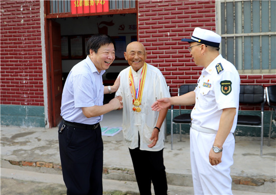 在90歲五級(jí)因戰(zhàn)殘疾軍人劉德山家,大伙認(rèn)真聽劉德山講述部隊(duì)的故事;汲冢鎮(zhèn)黃竹園行政村劉老家村88歲劉應(yīng)平參加過(guò)抗美援朝,如今年邁的老劉嚴(yán)重耳聾、語(yǔ)言交流障礙,還得靠親屬“翻譯”才能搭上一兩句話,當(dāng)聽到問(wèn)他生活好不好時(shí),老劉興奮地豎起拇指說(shuō):“好好好”;今年94歲的抗戰(zhàn)老兵丁相廷身體十分硬朗、精神矍鑠,不拄拐、眼不花、耳微聾,得知縣領(lǐng)導(dǎo)要來(lái)慰問(wèn),老丁早早地把自己的軍功章準(zhǔn)備好了,一個(gè)個(gè)掛在胸前,見面一個(gè)軍禮彰顯剛強(qiáng)作風(fēng)。從1945年入伍至1950年復(fù)員,老丁記得清楚、講得明白,大伙聽得有味、不停點(diǎn)贊;巴集鄉(xiāng)段寨村92歲抗美援朝老戰(zhàn)士段相士有個(gè)堅(jiān)持幾十年的好習(xí)慣,他每天早上都在村里走一圈,感受美麗鄉(xiāng)村變化,再用溫水抹抹澡,保持健康體魄。