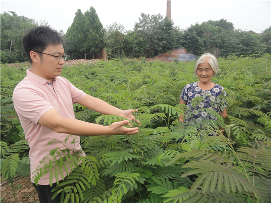 前幾年,朱桂蘭家2畝田地因?yàn)闆](méi)有出路,每到收莊稼時(shí)都要靠人背肩扛。董珍跟朱桂蘭商量,不種莊稼種苗木,既少掏勁,又多收入。朱桂蘭卻說(shuō),種了一輩子莊稼不會(huì)種苗木啊,再說(shuō),種的苗木賣給誰(shuí)???董珍給老人打下保證,樹苗管理由我負(fù)責(zé),銷路的話我?guī)湍?lián)系。這下,老人才放下心來(lái)。去年春季,董珍從網(wǎng)上購(gòu)買了2畝地的合歡樹種子,同統(tǒng)戰(zhàn)部駐村隊(duì)員一起育上苗,并按時(shí)打杈去枝,進(jìn)行科學(xué)管理。現(xiàn)在,2畝合歡樹苗長(zhǎng)到一米多高,老人每天都要到地里看一次樹苗,每次都是滿臉笑容。不知內(nèi)情的人問(wèn)老人,這么大年紀(jì)還會(huì)種合歡樹?朱桂蘭老人總是笑答:“是董書記幫俺種的?!?/span>