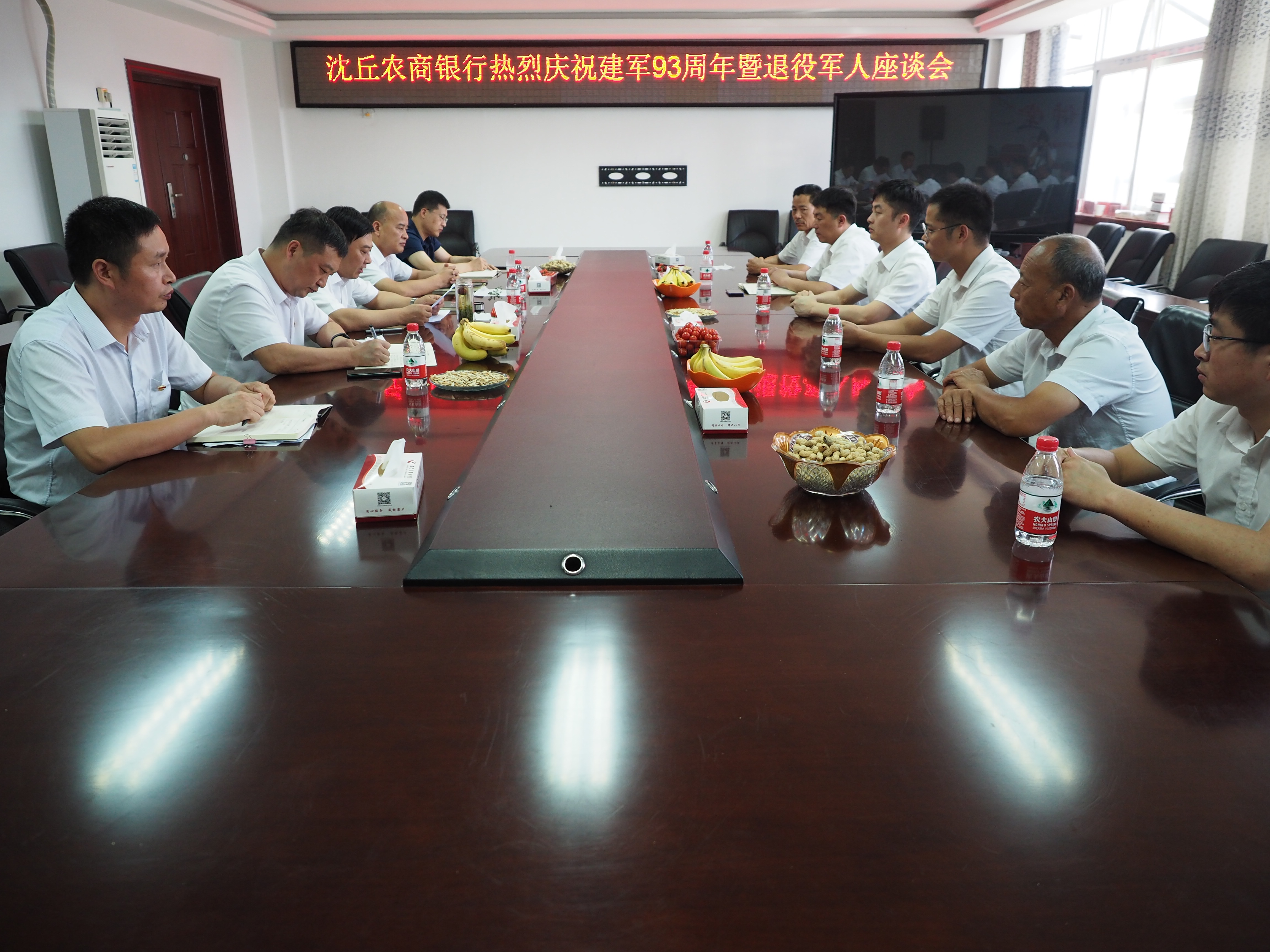 在中國人民解放軍建軍93周年即將來臨之際,7月31日下午,沈丘縣農(nóng)商銀行在總行五樓會(huì)議室召開退伍軍人座談會(huì)??傂邪嘧映蓡T和6名退伍軍人員工代表一起慶“八?一”,共憶軍營歲月,共話發(fā)展大計(jì)。
