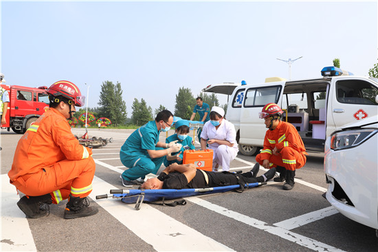 這是一場(chǎng)由多個(gè)部門共同參與的應(yīng)急演練,目的是為了提高處置重大交通事故的能力,切實(shí)增強(qiáng)道路交通事故處理部門應(yīng)急處置救援能力和水平,最大限度降低事故損失,維護(hù)人民群眾生命財(cái)產(chǎn)安全,提升交通事故快速處警、及時(shí)救援、有效救治、妥善救治的“四位一體”協(xié)作機(jī)制效能。