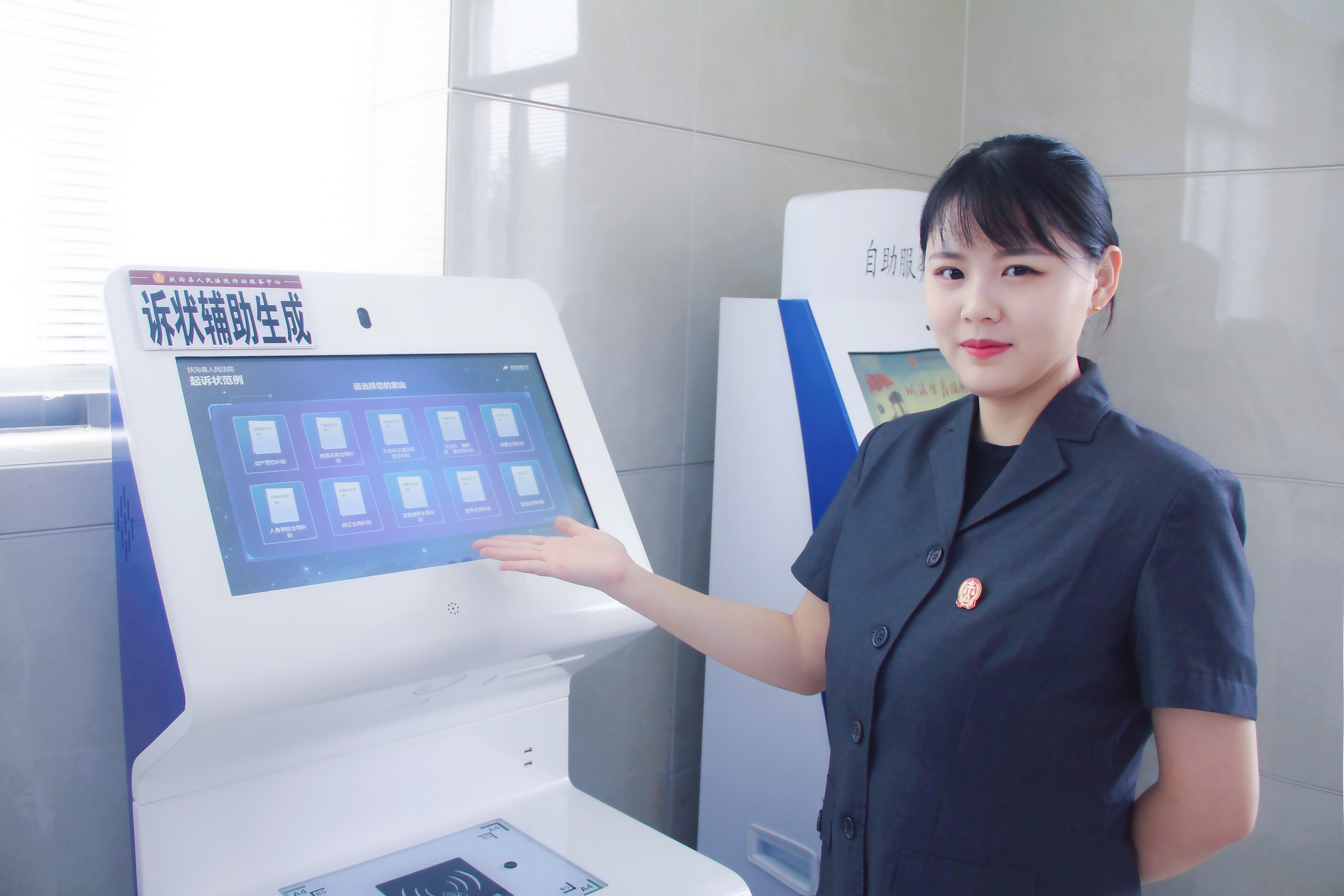 7月30日這天,扶溝法院訴訟服務(wù)中心門前站著一群焦急的人,他們既不進(jìn)入大廳立案也不肯離去。見此情形,訴訟服務(wù)中心導(dǎo)訴員便上前詢問情況,原來這些人都是農(nóng)民工,遇到老板拖欠工資,來到法院想維護(hù)自身權(quán)益又不知從何下手。導(dǎo)訴員引導(dǎo)他們來到自助服務(wù)區(qū),在智能訴訟一體機上填寫了相關(guān)信息,自動生成起訴書后成功立案。