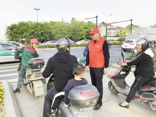 在浙江省杭州市富陽區(qū)春江街道大橋路和春南路交叉口,有這樣一位太康籍男子,他每天都會身著志愿者服裝在該路口勸導(dǎo)行人文明出行。