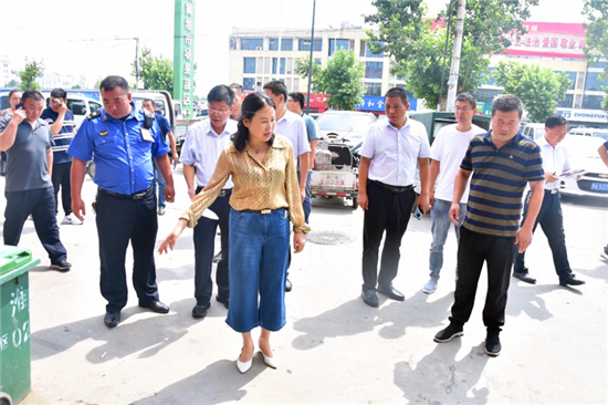 谷靜深入黃淮物流市場(chǎng)及沿街門店,檢查“門前三包”落實(shí)及問題整改情況。