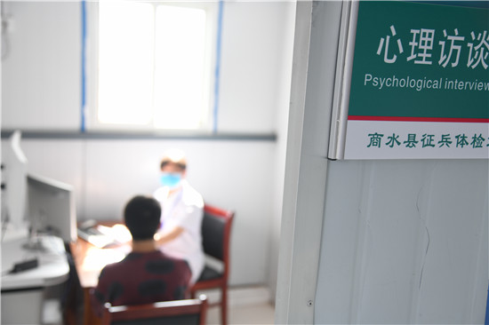 8月11日,在商水縣中醫(yī)院征兵體檢站,應(yīng)征青年在心理訪談室接受檢測。