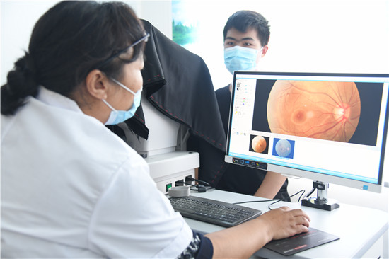 8月11日,在商水縣中醫(yī)院征兵體檢站,應(yīng)征青年在檢測視力。