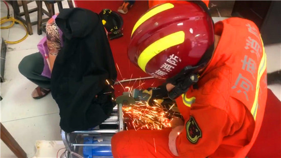 8月11日10時許,商水縣文化路西段一餐飲店內(nèi)一女店員在操作壓面機時右手小拇指被卡入機器內(nèi),急需救援。商水行政路消防站接到指揮中心調(diào)令后,緊急調(diào)派力量趕往現(xiàn)場救援。經(jīng)過近20分鐘處置,成功將被困人員救出。
