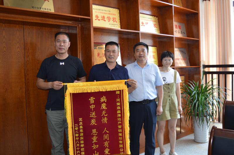 近日,沈丘縣思源實(shí)驗(yàn)學(xué)校將一面上書“病魔無(wú)情,人間有愛(ài),雪中送炭,恩重如山”的錦旗送到河南垚鑫房地產(chǎn)營(yíng)銷策劃有限公司工作人員手中。據(jù)了解,該公司在得知沈丘縣思源實(shí)驗(yàn)學(xué)校英語(yǔ)教師程改改父親因患肝硬化,已無(wú)力承擔(dān)后續(xù)的治療費(fèi)用時(shí),第一時(shí)間為程改改捐款2萬(wàn)元。