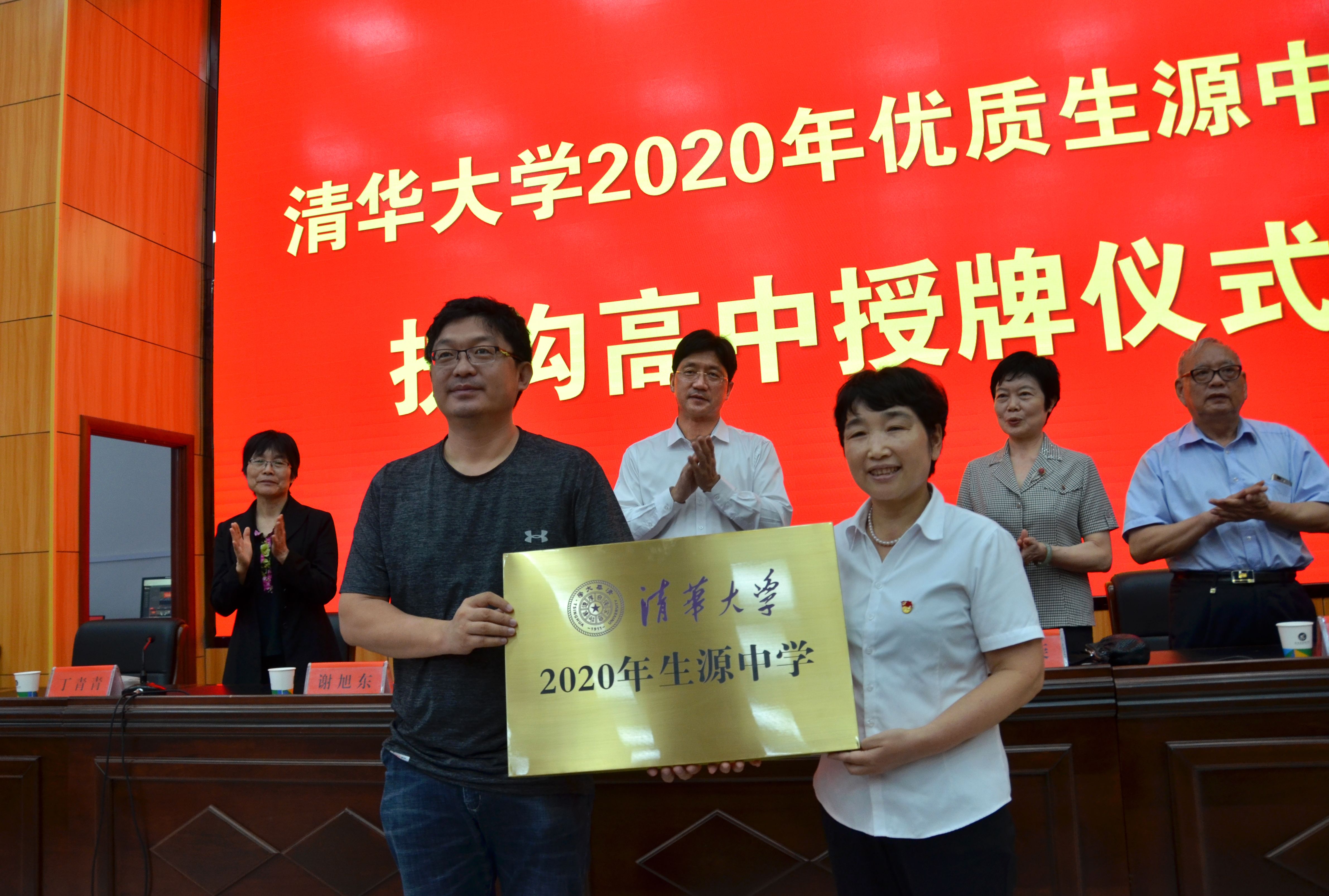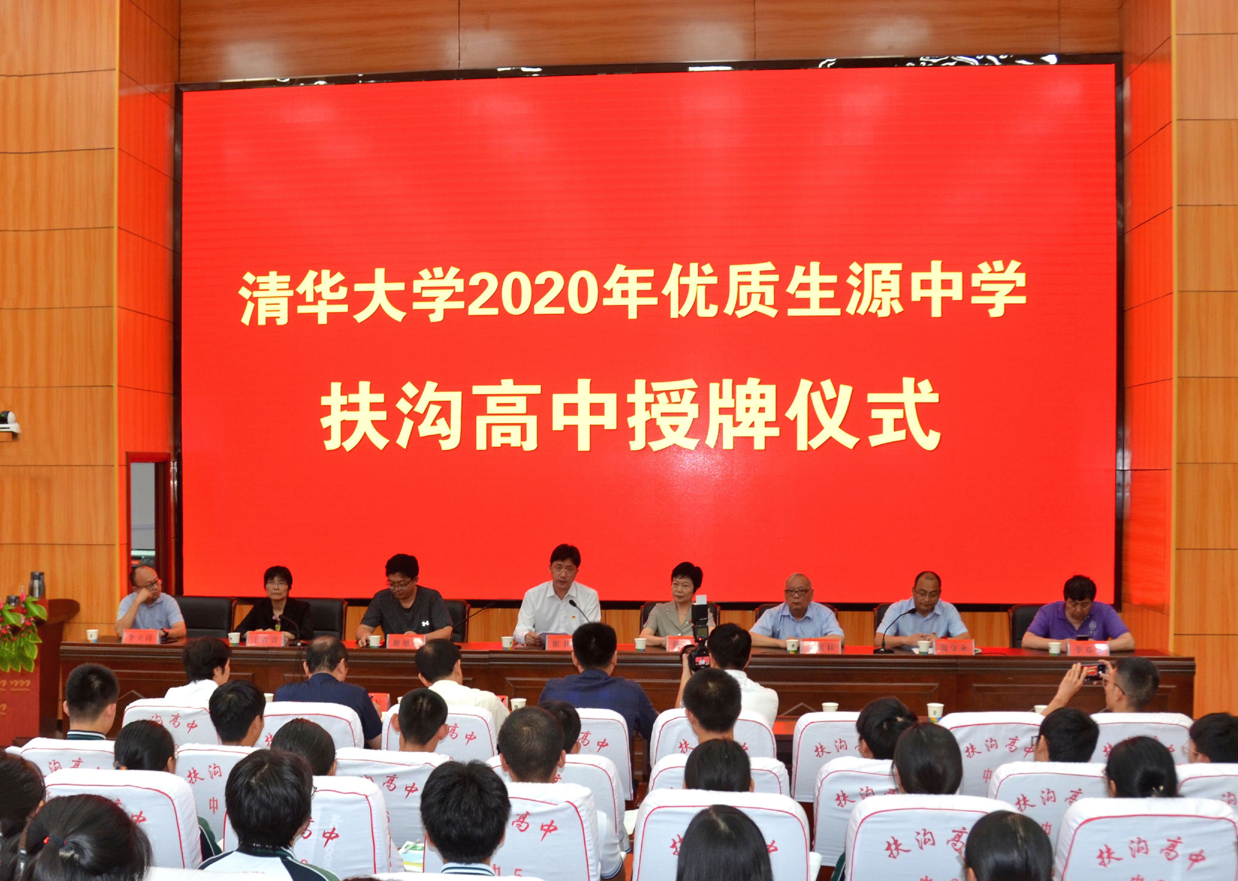 8月21日,清華大學(xué)2020年生源中學(xué)授牌儀式在扶溝高中舉行。清華大學(xué)河南校友會(huì)會(huì)長(zhǎng)詹玉榮,清華大學(xué)河南招生組組長(zhǎng)謝旭東,河南校友會(huì)副會(huì)長(zhǎng)車(chē)喜柱,清華大學(xué)河南招生組副組長(zhǎng)丁青青等一行六人出席授牌儀式。縣長(zhǎng)崔衛(wèi)國(guó),縣委常委、縣委宣傳部部長(zhǎng)尚守永出席授牌儀式。授牌儀式由尚守永主持。最后,謝旭東向扶溝高中校長(zhǎng)馮鳳云授予“清華大學(xué)2020年生源中學(xué)”榮譽(yù)牌匾。