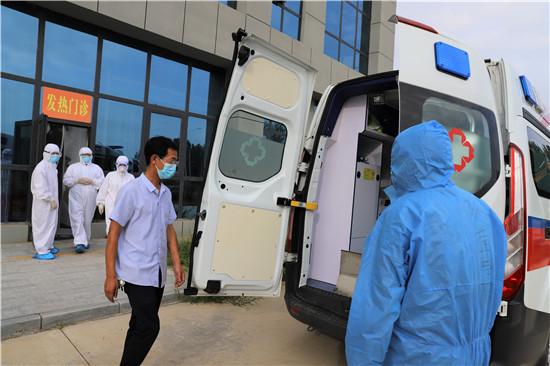 演練中,一名中年男子駕車到港區(qū)醫(yī)院就診,患者自述一周來在外地居住,無發(fā)熱癥狀,近一天來有氣促,活動后胸悶、氣促加重,偶有咳嗽。經急診科醫(yī)生多次詳細詢問流行病學史,發(fā)現(xiàn)患者有隱瞞病史嫌疑(一周前同室居住工友,23日已確診為新冠患者),確定該病員為可疑新冠病毒肺炎患者。立即電話通知科主任及醫(yī)療救治專家組成員會診,根據(jù)患者主訴和臨床表現(xiàn),專家組分析高度懷疑病人為可疑感染新冠病毒病員。立即轉運至隔離留觀室,并通知傳染病管理小組將疫情上報至市疾病預防控制中心,并協(xié)助對該病員進行流行病學調查、轉運及指導消毒、滅菌等工作。經市級專家會診后,符合疑似病例,按照區(qū)防控指揮部規(guī)定,采用負壓轉運車轉運定點醫(yī)院治療。